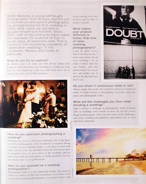 April-May 2010Ā issue of Photo life and Photo Solution magazines are out and it’s a feature on 5 best wedding photographers in Canada.Ā It definitely felt good to represent Toronto & Ontario and be among 4 other great wedding photography studios from all parts of Canada.